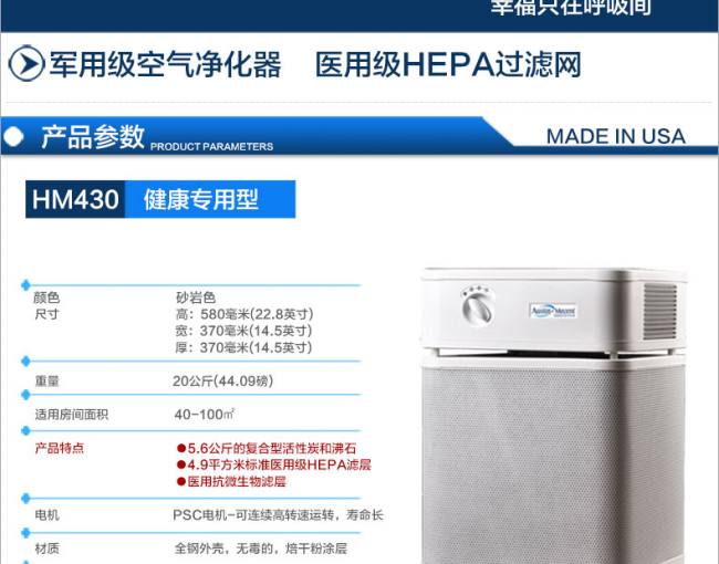 美国奥司汀空气净化器HM430 健康伴侣型商品信息