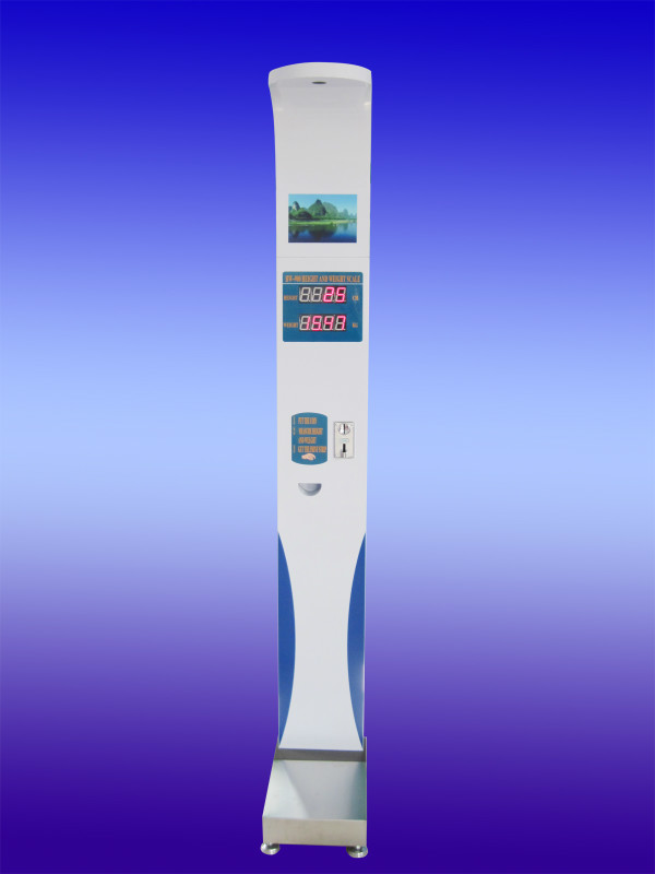 1.自动测量身高和体重,测量结果用大屏幕显示,并清晰语言报出。机器上边有七彩灯,时刻闪烁,十分吸引顾客。