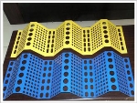 防风抑尘网采用金属原材料经机械组合模具冲孔,压制,喷塑而成,具有强度高,韧性好,抗弯曲,抗老化,抗阻燃,耐高低温,耐酸碱,承受弯曲变形能力强等优良性能;经过特殊配方和工艺制作,可根据用户需要制成各种厚度,颜色,具有使用寿命长,色彩鲜艳不易褪色等特点;综合抑尘效果良好,优于国内外同类产品。防风抑尘网不仅外形美观,维护成本低并且具备防火,防盗等优点;完全避免了以往表面覆盖,喷淋技术,全封闭几种措施反复投资,耗资巨大,受场地和作业要求限制,抑尘效果不佳的问。此项技术造价低,设置灵活,安装简单。一次投资,长期受益。挡风抑尘墙设置后不仅使污染严重的地区环境得到有交的改良,而且实施挡风抑尘墙的煤场每年还节省煤数千吨,在取得良好社会效益的同时又获得了最大的经济效益,美观整齐的挡风抑尘墙也成为这些地区一道怡人的风景线!