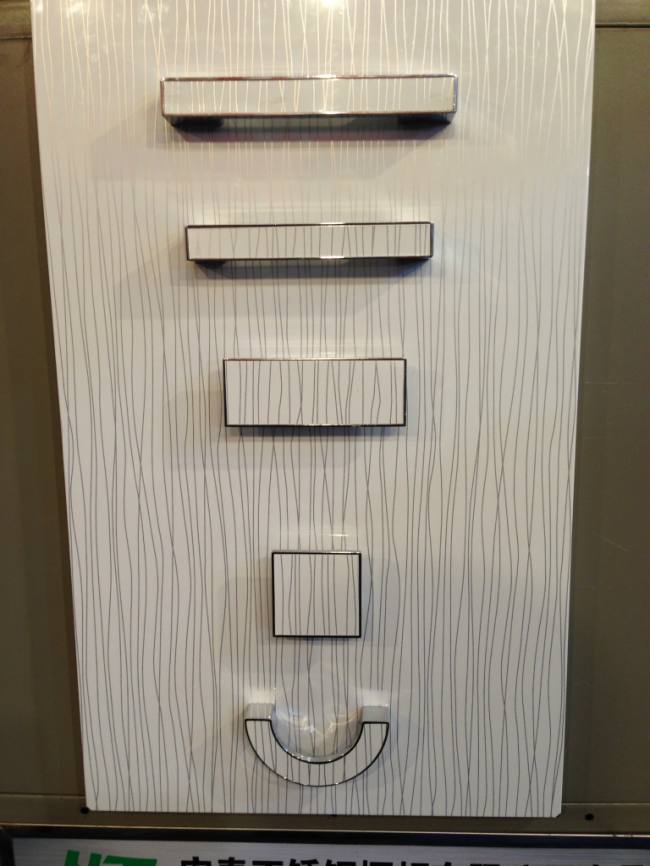 产品为亚克力同色拉手,PET同色拉手,规格有32*64*96*160*192(也分为正方形,长方形,弧形跟长条)。可以嵌入不同类型的板材(只要板材在标准5mm厚度上)做成与产品一样的同色拉手。