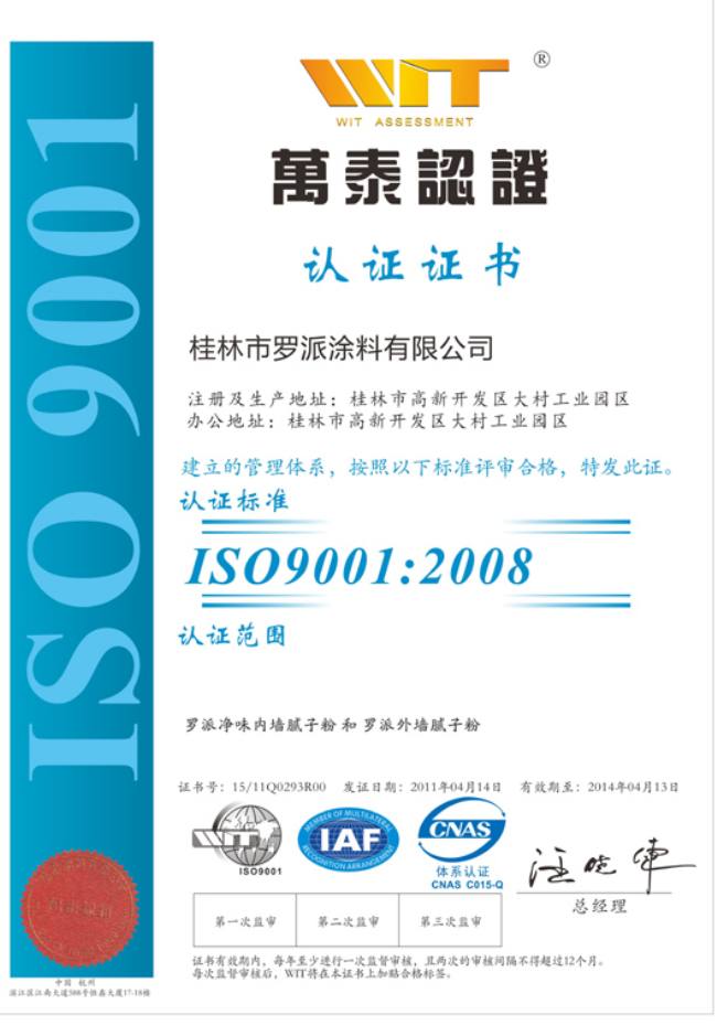 现今工程上使用的大都是107胶+滑石粉+纤维素衍生物化学浆糊,拌成胶水腻子,涂抹墙壁,普遍存在墙面起皮,变色,龟裂,受潮雨淋后脱落现象,成了影响工程质量的通病。造成墙面涂料整片下掉:皮之不存,毛将焉附。腻子都脱落了,涂膜又能如何?特别是外墙工程更为重要。要使涂料达到应有的涂装效果,这就需要有100%的耐水内,外墙专用腻子粉。腻子粉的技术性能指标要求:标准状态粘结强度0.7MPa,浸水48小时后的粘结强度一定要比标准状态的粘结强度大出数几倍以上,方能保证外墙恶劣气候的要求,才能保证经得起日晒雨淋,紫外线的照射,经久不衰,真正起到建筑美容的作用。