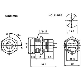 JK206B 4支端子, 通电方式on-on (1NO 1NC)