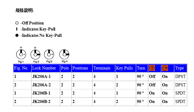 JK206A 4支端子, 通电方式off-on (2NO 2NC)
