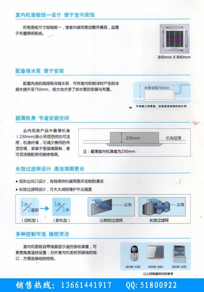 室内机尺寸(mm) 宽*高*深:主体:830*830*230 面板:950*950*70