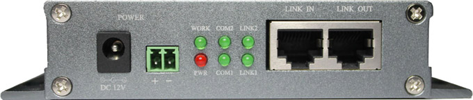 系统有专门的抗干扰稳压电路,使用出厂配带的220V转12V的电源适配器给设备供电;供电正常后,电源指示灯(PWR)亮,系统工作指示灯(WORK)闪烁。