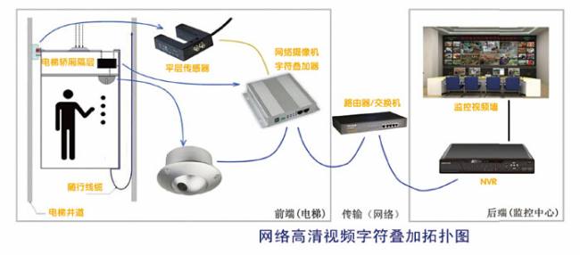 电梯楼层字符叠加器的电梯楼层信号是通过光电采集器经过隔磁板时发送的光电信息进行处理后,将其和摄像机输出的视频信号叠加为新的图文视频信号,送入显示器。