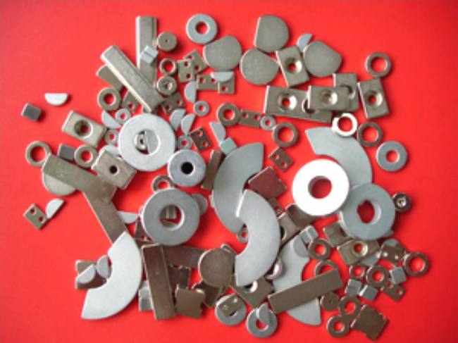1,钕铁硼磁铁: 它是目前发现商品化性能最高的磁铁,被人们称为磁王,拥有极高的磁性能其最大磁能积(BHmax)高过铁氧体(Ferrite)10倍以上。其本身的机械加工性能亦相当之好。工作温度最高可达200℃。而且其质地坚硬,性能稳定,有很好的性价比,故其应用极其广泛。但因为其化学活性很强,所以必须对其表面凃层处理。(如镀Zn,Ni,电泳,钝化等)。