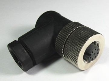 1-4 M12母头弯型防水电缆连接器(3-12针型,螺丝压紧或焊接电缆,IP67,A编码,B编码)