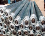 钢管制成,也有视不同工艺需要采用诸如铝合金6061T5,304L/316L不锈钢,2205双相不锈钢,铸钢件,实心锻打合金钢芯为材料的。 滚筒的生产主要有辊体初车,初校静平衡,轴头过盈装配焊接,精车和精校动平衡等工序组成。若对行为公差如圆度,圆柱度和直线度等要求在0.2mm以下的,则在精车后需要上外圆磨床或轧辊磨床磨削加工。对表面硬度有要求的,则需要增加热处理工序。 滚筒成型后,出于防锈防腐,耐磨和支撑的需要,还需要表面处理或包覆如喷漆,镀锌,TEFLON喷涂,包橡胶,镀铬,陶瓷喷涂和氧化等工序。 按尺寸来分类,有大型的如造纸机械用辊筒(长度可以达到10米以上,直径在1500mm以上),有小型的如自动流水线上皮带输送上用的平托辊(一般在1米长以内) 度以内,直径也在159mm 按作用来分,有要保证传递精度的如数码激光打印机上的辊筒,有起压滤作用的如造纸机械上的压光辊,有对尺寸精度要求不高的支撑用托辊,有热交换要求的辊筒,也有起重型压滤作用的辊筒等,不一一列举。 滚筒直径选择:25mm,32mm,38mm,42mm,50mm,57mm,60mm,76mm,80mm,89mm。 滚筒材质选择:碳钢镀锌,碳钢镀铬,碳钢包胶,铝合金,不锈钢,ABS等。辊筒类型选择:无动力辊筒,单链辊筒,双链辊筒,“O”带辊筒,锥形辊筒,槽型辊筒。辊筒固定方式:弹簧压入式,内牙轴式,全扁榫式,通轴销孔式。