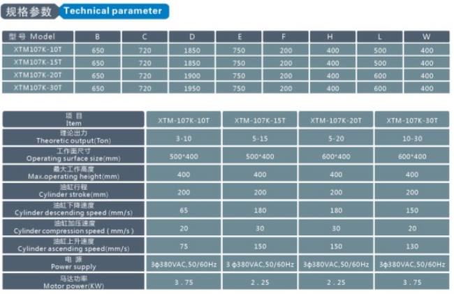 1.该系列液压压床以1-15MPA的液体压力为动力源,外接三相AC380V 50HZ或三相AC220 60HZ交流电源.总耗电功率不超过3.7KW.
