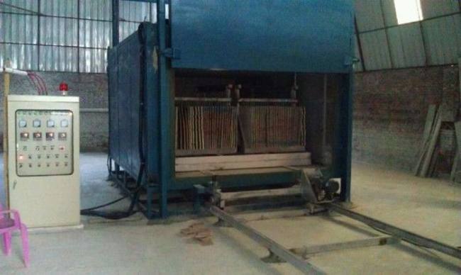 5,台车采用14#槽钢焊接制作,由AC马达,减速机控制台车进出,台车马大功率2.2KW。(注:石材装装料架由需方自备)