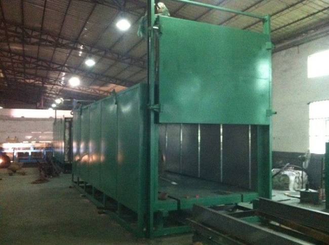 3,炉门的升降为上下升降结构,采用机械传动,由电机,减速机带动链轮链条传动升降。炉门的密封是通过炉门两侧的自动调节手臂自动压紧密封,马达功率2.2KW。