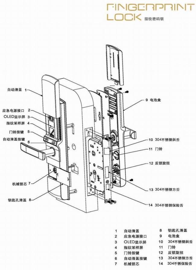 锁是一种以人体指纹为识别载体和手段的智能,它是计算机,电子技术,机械技术和现代五金工艺的完美结晶。指纹锁一般由电子识别与控制,机械联动系统两部分组成。指纹的唯一性和不可复制性决定了指纹锁是目前所有