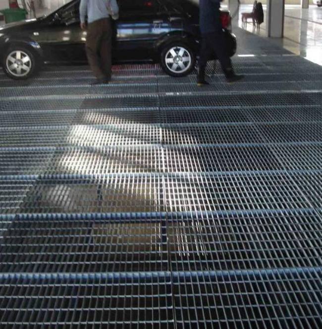 钢格板是用扁钢按照一定的间距和横杆(扭绞方钢,方钢,圆钢,扁钢等)进行交叉排列,并且焊接成中间带有方形格子的一种钢铁制品,钢格板主要用来做水沟盖板,钢结构平台板,钢梯的踏步板等.横杆一般采用经过扭绞的方钢.钢格板一般采用碳钢制作,外表热镀锌,可以起到防止氧化的作用。也可以采用不锈钢制作.钢格板具有通风,采光,散热,防滑,防爆等性能。