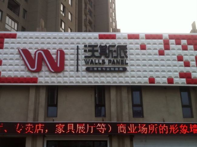 产品应用范围:沃斯派户外立体装饰三维板主要应用于大型公共场合如家居广场外墙,商业中心外墙,家电卖场,超市,婚纱影楼以及各类店面门头及外墙装饰等。