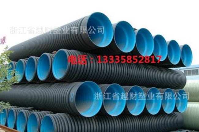 产品形状:外壁波纹黑色突起形,易于施工抗压,内壁蓝色光滑,易于流水畅通,管头扩口承插,便于连接
