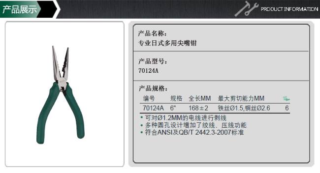 世达尖嘴钳70124A 日式多用尖嘴钳70124A 商品信息