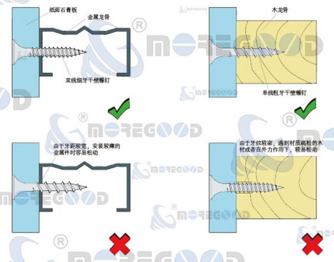 双线细牙干壁螺钉与单线粗牙干壁螺钉的区别和使用场合