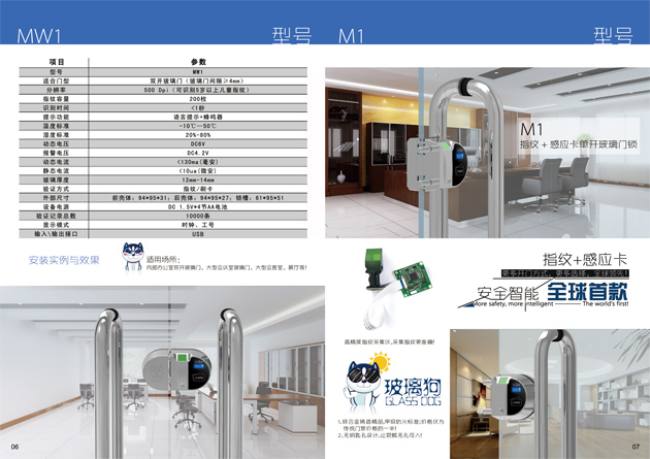 玻璃狗-智能玻璃门指纹锁,他主要是安装在玻璃门上的智能锁。所谓智能锁就是指区别于传统机械锁,在用户识别,安全性,管理性方面更加方便简单更加智能化的锁具。