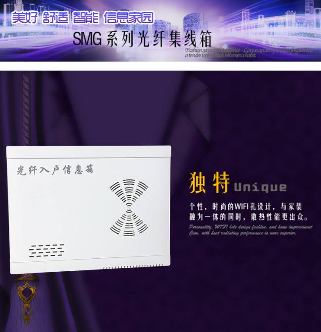 1,智能信息箱是现代智能小区布线的首选配套产品,是弱电系统的综合集成,是数字家园的核心,集宽带数据,语音电话,有线电视,暗访监控,远程监控,自动抄表等系统信号。方便地为用户对家居的各种信息资源及网络设备进行集中管理,分配和控制给您的家庭生活带来更多的便利,乐趣和更安全的环境,它可根据客户的要求,任意选择自由搭配。