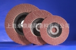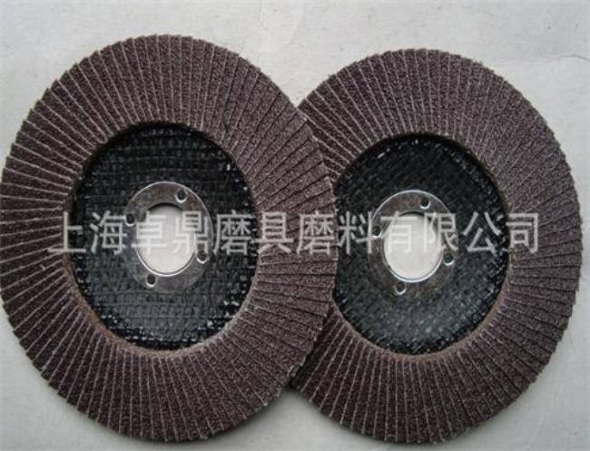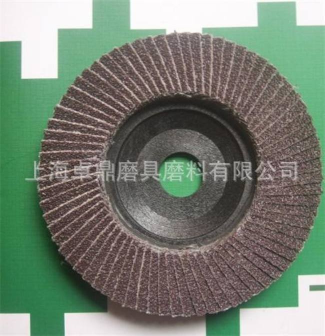 原材料进口,基体有网布,塑料等,砂布分成一小块一小块排列,呈扇形均匀分布 ,以保证最佳的磨削效果 粒度36#-600#,以60#,80#最常见,外径4"-7"装于角向磨光机,用于焊缝,正边毛刺的打磨及修磨加工,可与钹形砂轮互换用,有弹性好,效率高,散热好,噪音低的优点,特点是具有较强弹性,较高的抗拉弯强度良好的磨削效果.打磨速度快,效果好,并且打磨时的噪音低,适用于各大金属制件厂,五金和机械厂等.