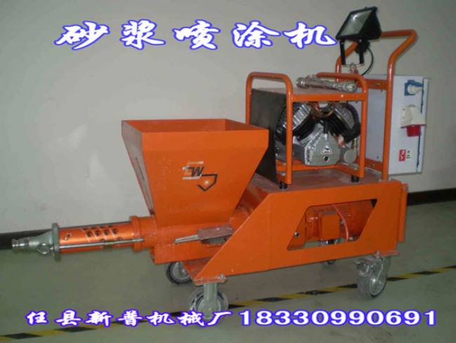上述参数,因灰浆性质,润滑度,胶套,螺杆状态,输送高度等因素影响而实际情况有所不同。 本机是一种螺杆式高压砂浆喷涂机,工艺先进。操作及维护简单,无需特殊培训就可熟练操作。砂浆喷涂机产品主要用于建筑内外墙体,水泥砂浆喷涂和外墙体保温材料砂浆喷涂,耐火材料喷涂。 本经销生产的砂浆喷涂机基本没有落地灰,省水,省料,可大降低成本,操作简单,无需搭脚手架,不用移动设备,不用修补搭茬,阴阳角,顶板均能自由喷涂,具有速度快,效率高,劳动强度低,一台多功能喷涂机每小时可轻松喷涂200平方米面积。 人工粉墙和以前推出的粉墙机,主要缺点是砂浆和墙体的粘结度及砂浆的密度低,我经销推出的喷涂设备流量大,压力高,克服了上述缺陷,砂浆密度远远超过了国家规定的标准,避免了因质量,工期,工价等问题造成的麻烦。 一机多用,能喷涂砂浆,防水涂料,耐火材料,不受地区和环境条件及喷涂面形状的影响。 本机是一种电螺杆式高压砂浆喷涂机,工艺先进,操作及维护简单,无需特殊培训就可熟练操