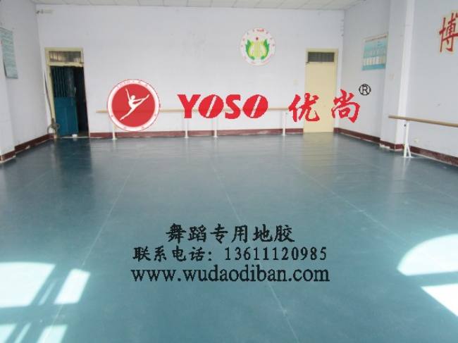 舞蹈房专用地板是一种软质的聚氯乙烯,它根据舞蹈的特性,专业制定而成,具有一定的缓冲作用,不涩,不滑,柔韧度好的特征。而一般的PVC,大多数是用在工业绝缘上的,材质较硬,粗糙。另一种是运动地胶,适合与体育比赛等。和舞蹈专用地胶有着质的区别。 舞蹈地胶的颜色是多色的,可根据客户提供的色卡制作。目前舞蹈团体主要选用的颜色有:墨绿,湖兰,天蓝,浅灰等。舞蹈地胶的规格是根据他的厚度划分的,主要分为:3mm,4mm,5mm,舞蹈地胶的规格是根据地面和经费进行选择的,3mm,4mm的舞蹈地胶适用于木质地面,4mm,5mm的舞蹈地胶适用于水泥地面,地板砖等。舞蹈地胶