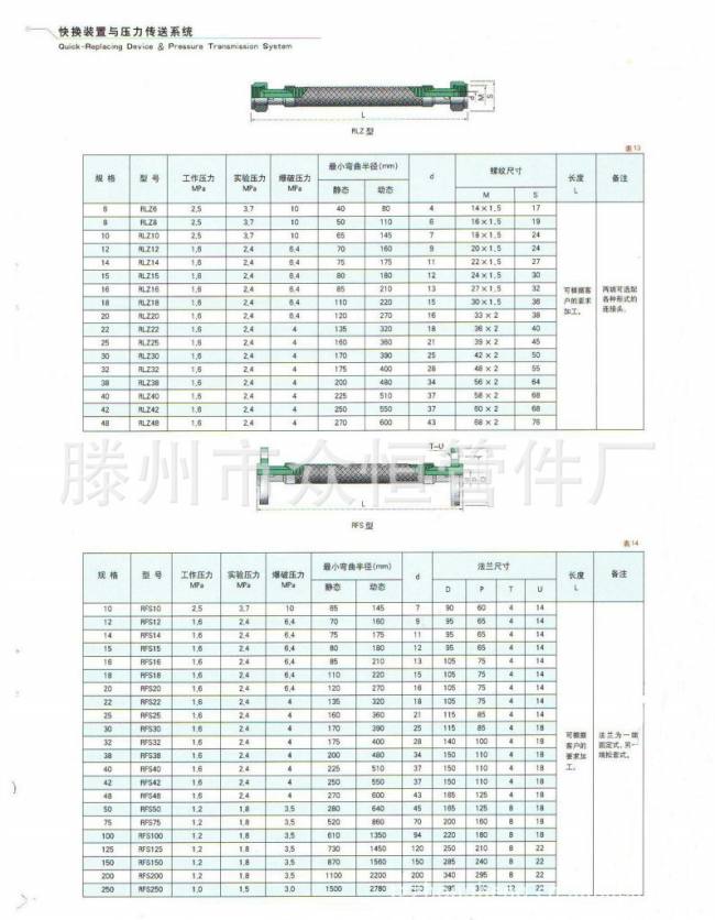 我公司可根据用户的要求制作通径到DN600mm,全长0。3m到40m的金属软管。金属软管有两端螺纹式,一端螺纹一端法兰式和两端法兰式或快速连接等结构形式。法兰符合GB9119-88标准,内销产品执行GB14525-93标准,出口产品执行ISO7314准。