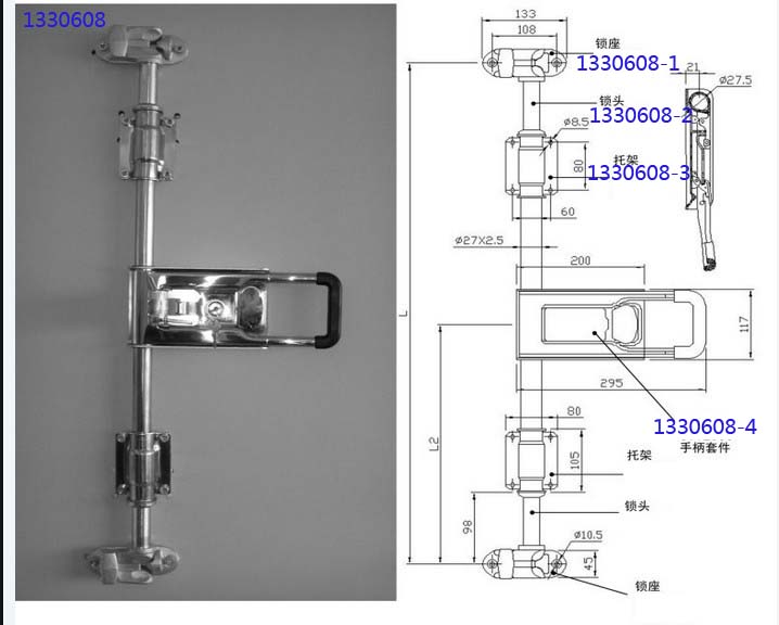 外贸品质不锈钢304材质冷藏车车厢后门锁具套件产品名称:不锈钢厢货车厢后门锁