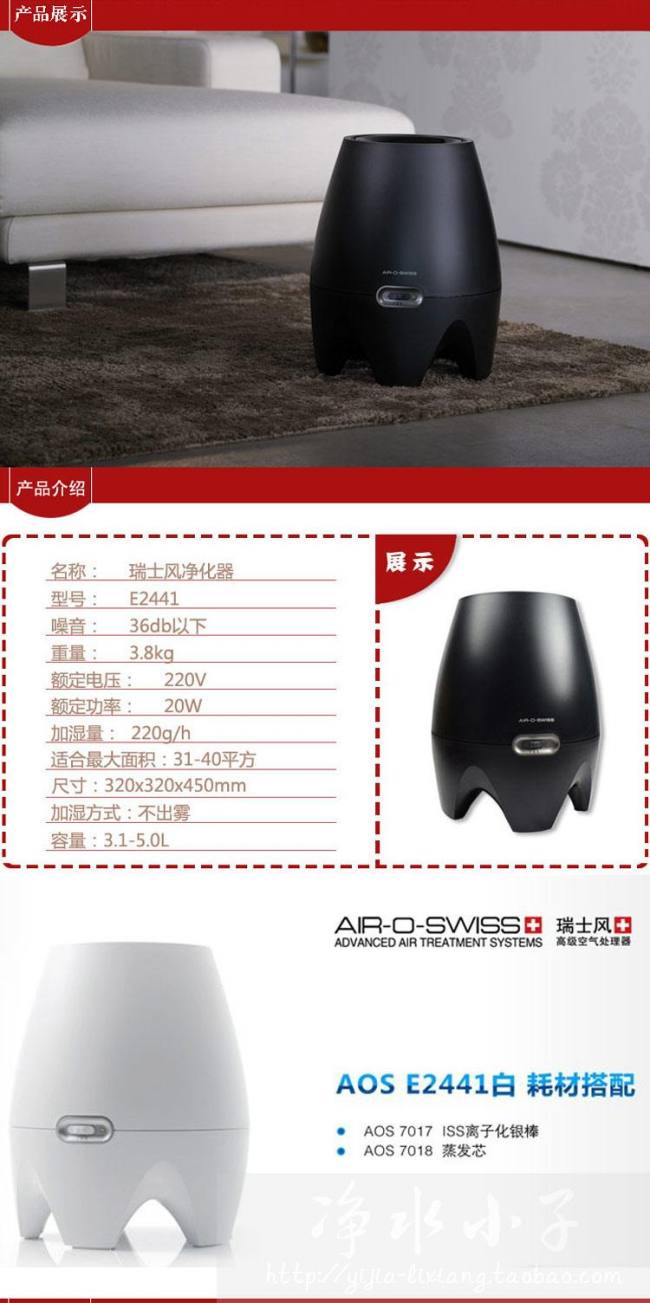 瑞士风AOS E2441A净化型加湿器/有效去除灰尘 毛发商品信息