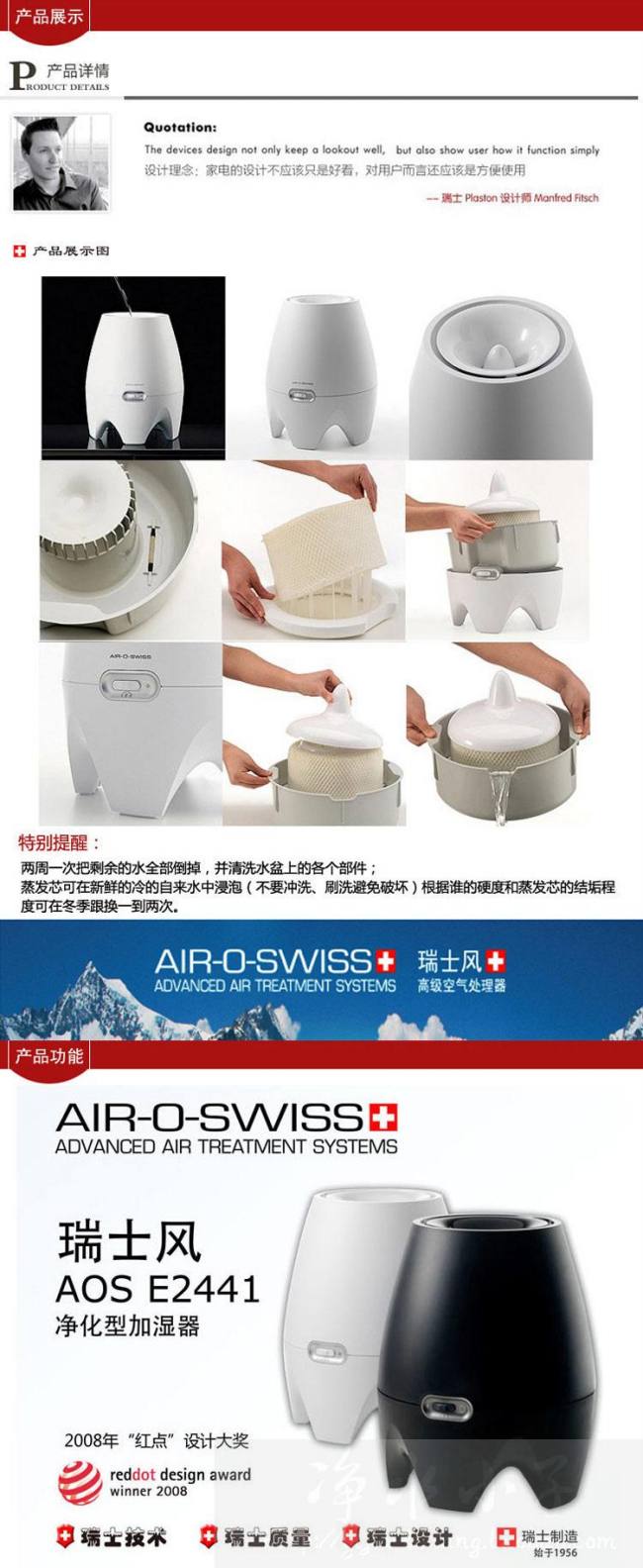瑞士风AOS E2441A净化型加湿器/有效去除灰尘 毛发产品概况