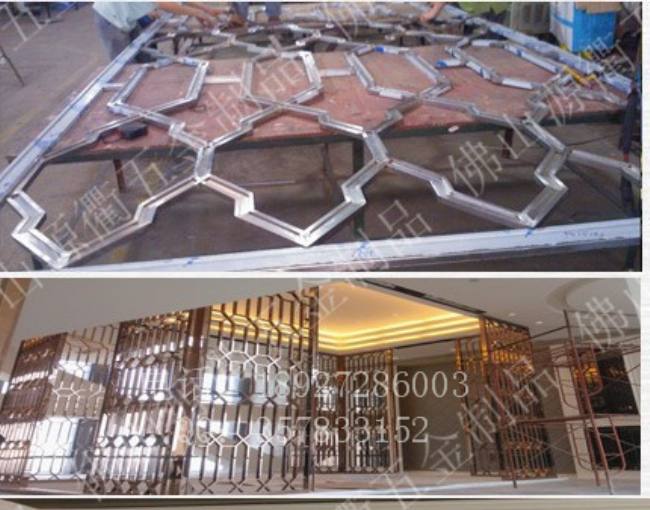 本厂专业生产不锈钢屏风,镂空屏风,制作工艺:采用201/304等优质不锈钢制作,焊接均为全焊或者点焊,焊接口均打磨并抛光拉丝或镜面处理平整无缝隙,花纹均焊接在方管内整体可做成拆装或者不拆装,做好后可根据客户要求是否需要镀颜色等各方面的工艺要求。不锈钢屏风也叫不锈钢花格,屏风的用处比较广泛,人们一般用来酒店大堂隔断,客厅装饰,办公室隔断,令空间得到更好的分配。同时也多一种工艺品欣赏。