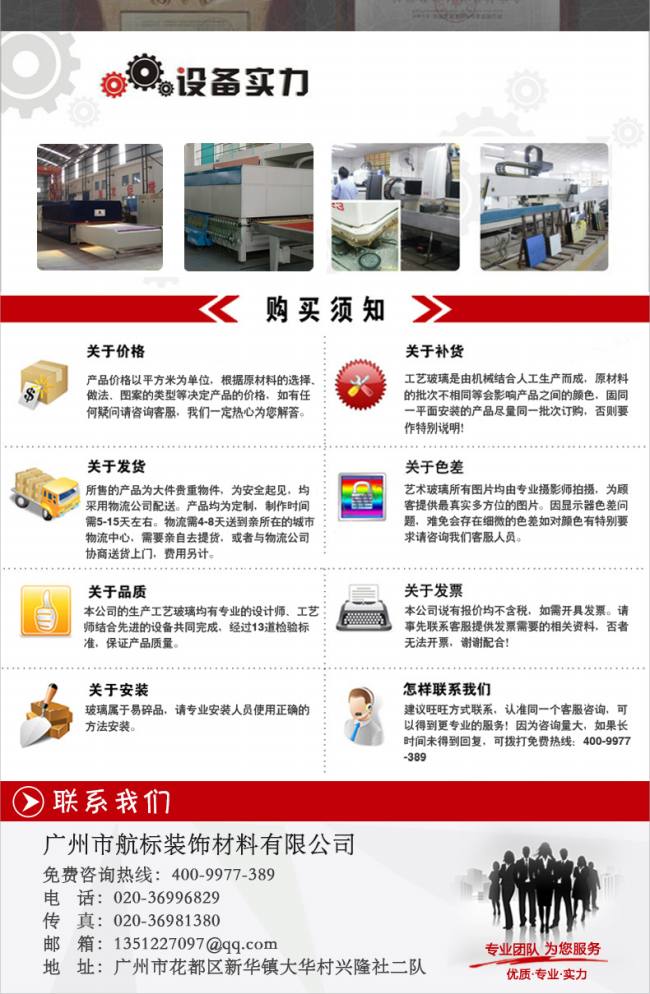 公司名称:广州市航标装饰材料有限公司 联系人:周艳玲 电话:86-020-36996829