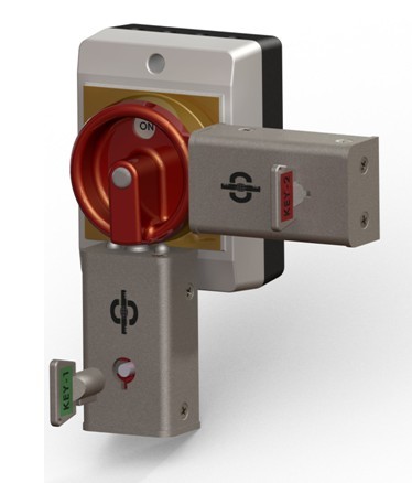 应用案例 ● 当隔离开关处于ON(接通)状态时,KLT单元 1的锁栓伸出, KEY-1钥匙拔出,隔离开关锁定;KLT单元 2锁栓收进, KEY-2钥匙锁定在单元上。