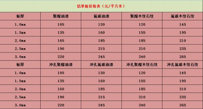 冲孔铝单板价格: