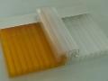 (3)防紫外线:PC板一面镀有抗紫外线(UV)涂层,另一面具有抗冷凝处理,集抗紫外线,隔热防滴露功能于一身。特殊工艺制作的PC板,适用于特种花卉种植以及对防紫外线防护要求更高的环境。可阻挡紫外线穿过,及适合保护贵重艺术品及展品,使其不受紫外线破坏。也有双面UV的
