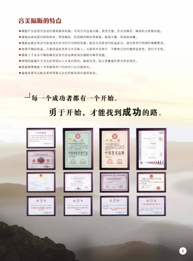 产品信息:隔断厚度为65㎜,有单片式和双片式之分,可开设U型和L型门中门,每片屏风最大负载为225㎏,顶底伸缩范围为22.5㎜。
