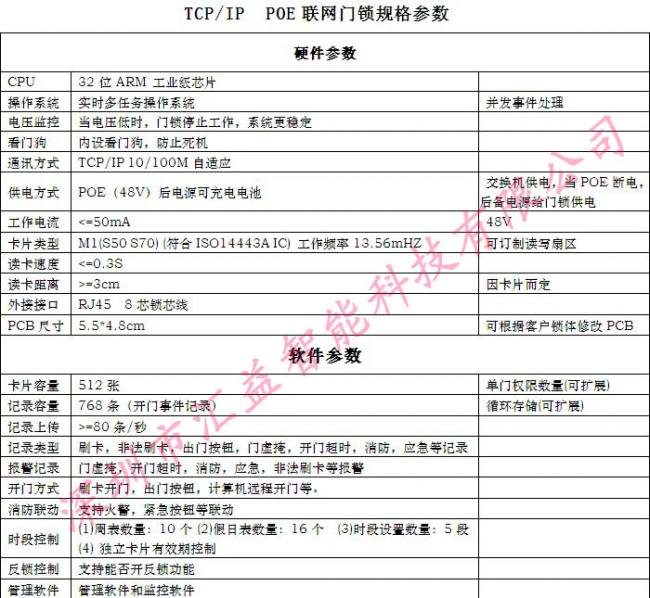 TCP/IP联网门锁采用TCP/IP通信协议,速度快(100M自动适应),实时性高且系统稳定性好。采用以太网的交换机设备和网线,布线标准化,适用于大型的联网系统。记录容量大。(一个门768条,512用户)