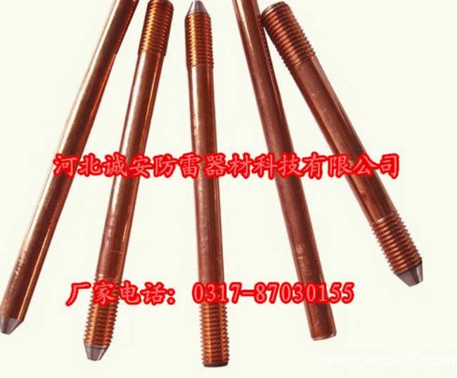镀铜接地极是引进先进的电镀工艺生产而成,该产品具有铜层厚(0.254毫米以上),阻值低,耐腐蚀性强,强度高(抗拉强度60000牛顿/平方厘米以上),安装方便,电气性能好,粘合度好,不剥离(可轧制螺纹),寿命长(50年以上)等特点。兼有铜材良好耐腐蚀能力和钢材极佳的机械性能,是用于替代角钢,圆钢纯铜棒等材料,制造垂直接地极的新型接地产品。电镀工艺生产的系列产品,克服了套管包覆法存在的结合力差,易剥离,铜层易破(造成腐蚀)等缺陷,可广泛应用于输变电和通讯线路,电站,建筑物及天线的接地装置中,也可用于计算机等电子设备的接地系统,并可与接闪器(避雷针,避雷带,避雷带)及引下线组成防雷接地装置。