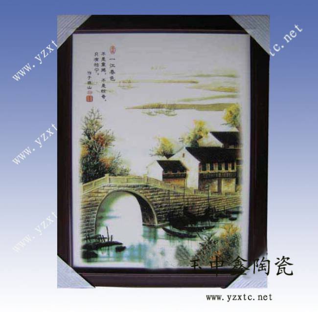 理:本厂有专业防震包装的措施,确保运输安全无虑,商品在运输中万一破损,确认后我们将重新补寄。景德镇是中外著名的瓷都,制瓷历史悠久,文化底蕴深厚。史籍记载:“新平冶陶,始于汉世”,可见早在汉代就开始生产陶瓷。景德镇瓷器享有“白如玉,薄如纸,声如磬,明如镜”的美誉。 景德镇玉中鑫陶瓷就坐落于这座城市的中央,公司集陶瓷设计,制作与销售为一体,是一家具有一定实力与规模的陶瓷有限公司。我公司生产陶瓷板画,陶瓷装饰画,大型装饰壁画,瓷像肖像画,瓷板画屏风,梅兰竹菊瓷板画,仿郎世宁瓷板画,景德镇瓷器瓷板画等多种款式与画面等一系列瓷板艺术品。景德镇陶瓷板画经过1300度的高温烧制后,画面永不退色,不怕风吹日晒,耐火烧刀刮,具有很强保存与收藏的价值。景德镇陶瓷板画工艺有手绘与贴花两种,手绘的陶瓷板画是人工在瓷板上一笔一笔画出来,然后再上色上釉再经过高温烧制出来的;贴花的陶瓷板画是画面经过电脑设计打印,然后把画面印制到花纸上,在经过高温烧制出来。不论是贴花还是手绘的陶瓷板画,摆在家里,酒店,宾馆,公司等公共场所,都是一道很亮丽的风景线。景德镇陶瓷板画画面也有青花与粉彩之分,青花画面的素雅简单,高雅大方;粉彩画面的色彩艳丽,画面形象生动,各有各的特色。 景德镇陶瓷板画并不拘形式,我们还自创异形陶瓷板画,有的用几十个扇形瓷板做骨架做成一个青花扇形,装饰整个墙面,一色成画,颇有中国画风格。用陶瓷板画做成不同造型镶嵌在门上,改变了装修门千篇一律的风格,给人感觉很有创意很独特。我公司生产的陶瓷板画画面丰富,种类繁多,含义深刻,规格也各有不同,可用于家居陈设,同时也是家人,朋友,同事,客户,领导等之间馈赠的首选礼品,另我公司还可通过客户提供的画面,根据客户的要求提供生产与服务,定制客户满意的陶瓷板画。 总结选择景德镇陶瓷板画,优点多多:一,可按照客户要求的图案进行绘制或烧制;二,不受数量限制,任何数量都可以定制品;三,永不褪色,因为我们经过高温烧制(这是和纸画最大区别);四,强度高,我们是在经过1300度以上高温烧制而成的瓷板上绘制的,在室内室外都不怕日晒雨淋或者钝器划刻。另我公司还生产各式陶瓷工艺品,陶瓷日用品,陶瓷装饰品,欢迎广大新老客户来我公司定制产品。您的梦想我来成就,玉中鑫陶瓷欢迎您的来电与参观。