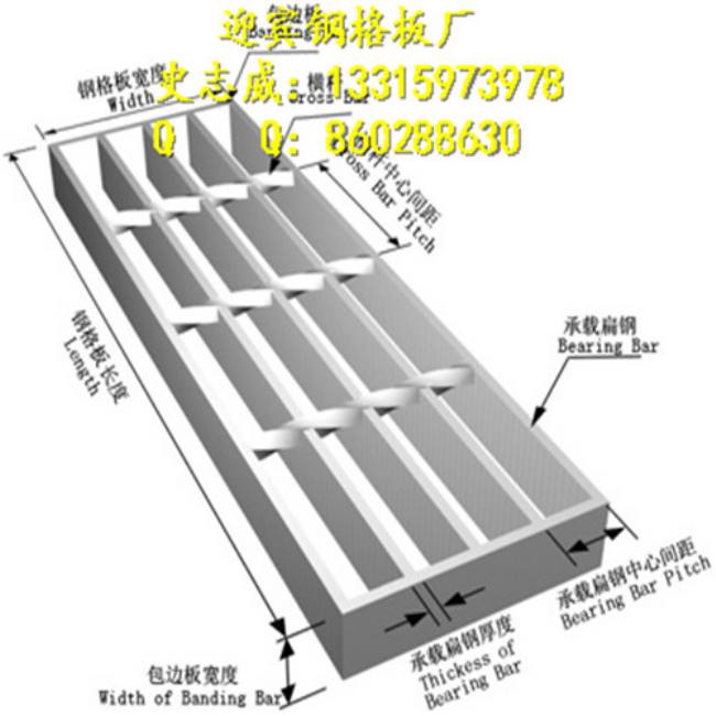 钢格板由负载扁钢和横杆按一定的间距经纬排列而成格栅,经向为负载扁钢,即钢格板的长度方向;纬向为横杆,即钢格板的宽度方向。