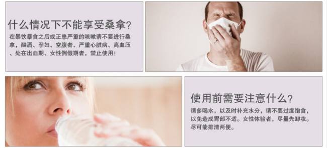 桑拿房图片 桑拿房包括干蒸房和房,但是人们平说的桑拿房是干蒸房,蒸汽房是湿蒸房。 干蒸: 是利用电加热设备-桑拿炉把电能直接加热后会释放热量使房内温度升高,而让人排汗。干蒸的温度较湿蒸高,可达到100℃左右。干蒸因不含水分,尤适合有风湿病的患者,同时没有蒸汽的味道,蒸起来鼻子会较舒服。不过蒸完皮肤会较干燥,所以得补充水份。 湿蒸: 是把水烧开使之产生蒸汽,再通过管道喷出,产生的蒸汽有充沛的水分。温度一般控制在50℃左右。女士们大多会选择湿蒸,因为蒸完后,皮肤都会较之前红润,水灵。