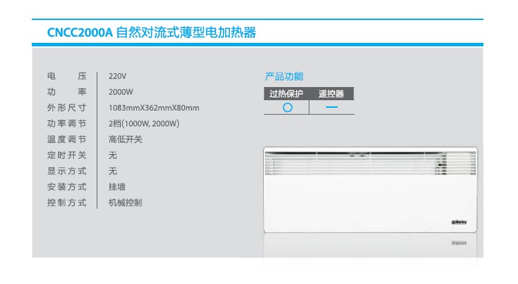 美国马利壁挂式对流式电暖器CNCC2000A商品信息