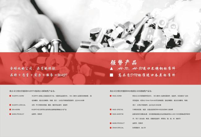 万喜(天津)紧固件有限公司是德国WURTH集团在华投资的独资子公司,我们专业供应德国WURTH集团下各种DIN/ISO标准的碳钢8.8级/10.9级/12.9级和不锈钢A2-70/A4-70/A4-80紧固件产品。每批产品从入库到配送至客户仓库中的各个环节,万喜为您提供全面优质的检测服务,包装运输以及贴心的售后指导。作为全国铁路紧固件最优秀的配套供应商,我们悉心为之服务的客户和项目有长客250-350-380高铁项目,唐车C类标准件项目,庞巴迪和南京浦镇城轨等地铁项目