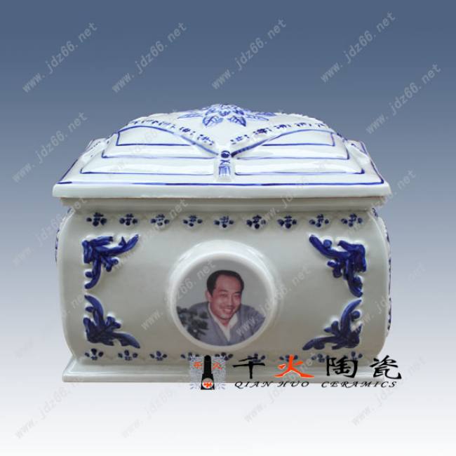 景德镇唐龙陶瓷公司旗下千火陶瓷品牌生产供应陶瓷骨灰盒,陶瓷骨灰罐,陶瓷棺材,陶瓷殡葬用品,陶瓷殡仪馆用品,雕刻陶瓷骨灰盒,手绘青花陶瓷骨灰盒,粉彩陶瓷骨灰盒,工艺品陶瓷骨灰盒。