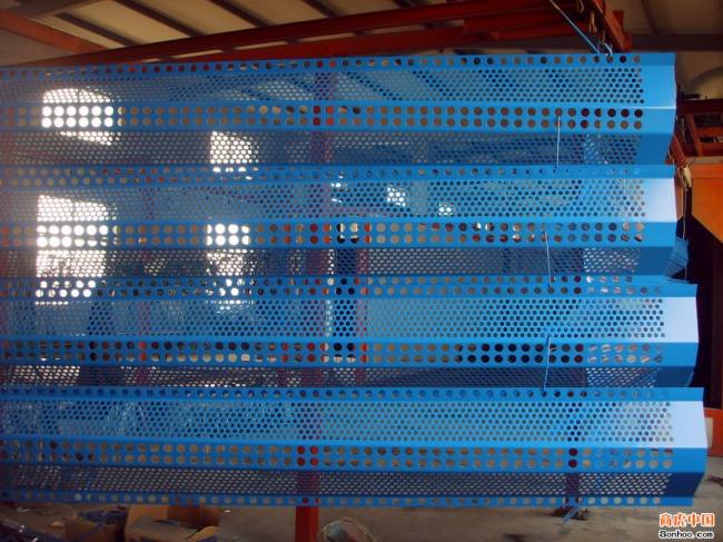 防风抑尘网也称作挡风墙,防风网,防尘网。此产品采用金属原材料经机械组合模具冲孔,压制,喷塑而成,具有强度高,韧性好,抗弯曲,抗老化,抗阻燃,耐高低温,耐酸碱,承受弯曲变形能力强等优良性能;经过特殊配方和工艺制作,可根据用户需要制成各种厚度,颜色,具有使用寿命长,色彩鲜艳不易褪色等特点;综合抑尘效果良好,优于国内外同类产品。防风抑尘网不仅外形美观,维护成本低并且具备防火,防盗等优点;完全避免了以往表面覆盖,喷淋技术,全封闭几种措施反复投资,耗资巨大,受场地和作业要求限制,抑尘效果不佳的问题。此项技术造价低,设置灵活,安装简单。一次投资,长期受益。挡风抑尘墙设置后不仅使污染严重的地区环境得到有交的改良,而且实施挡风抑尘墙的煤场每年还节省煤数千吨,在取得良好社会效益的同时又获得了最大的经济效益,美观整齐的挡风抑尘墙也成为这些地区一道怡人的风景线!