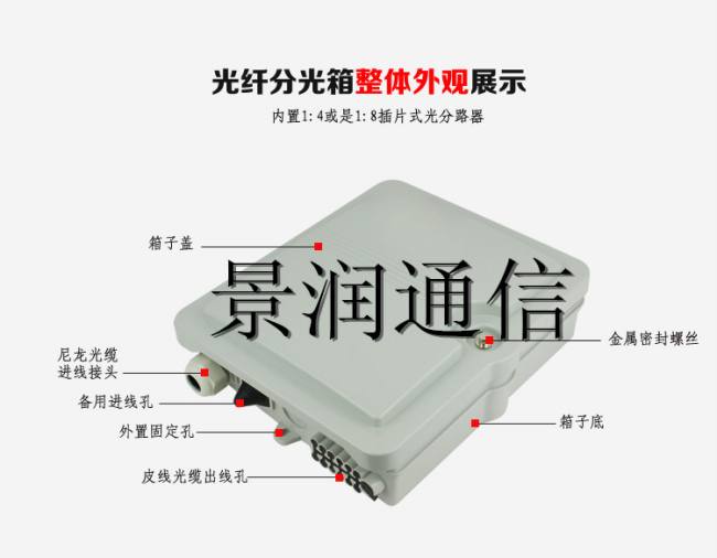 一,光缆分纤箱适合于光纤接入网中的配线光缆与入户皮线光缆交接点使用。箱体采用壁挂或抱杆安装方式,适用于室内和室外两种场景使用;通过SC型光纤适配器及快速连接器对外线铠装光缆与入户皮线光缆之间进行连接与调度。