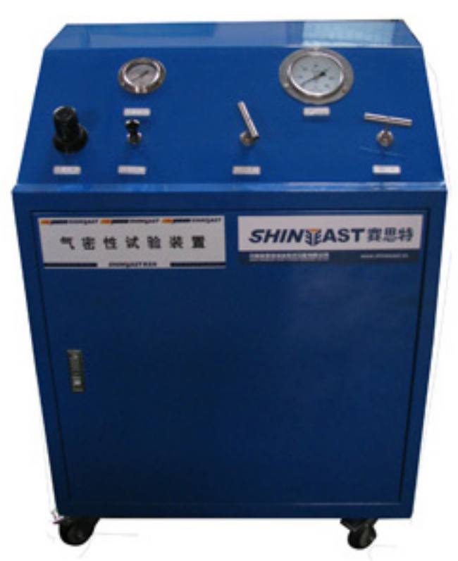 该装置是采用我公司生产的增压比为 40:1的气体增压泵,其动力来源是空压机的0.3-0.8MPa的压缩空气,额定输出压力为12-32MPa。装置上配有手动调压阀,通过调整增压泵的驱动压力即可无级调整增压泵的输出高压气体的压力,出口接有3米的高压测压软管,用户只需准备一排量在0.5-0.75m3/min的空压机,通上气管就可进行CNG汽车改装管路的气密性检测。