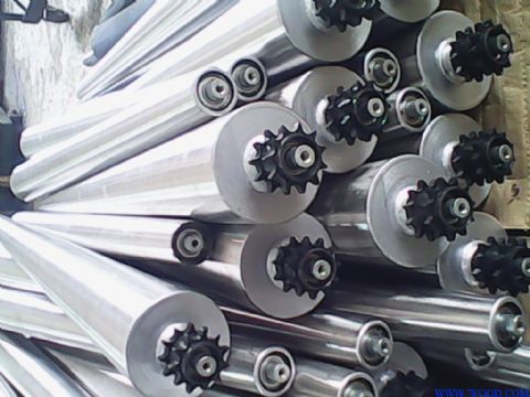 钢管制成,也有视不同工艺需要采用诸如铝合金6061T5,304L/316L不锈钢,2205双相不锈钢,铸钢件,实心锻打合金钢芯为材料的。 滚筒的生产主要有辊体初车,初校静平衡,轴头过盈装配焊接,精车和精校动平衡等工序组成。若对行为公差如圆度,圆柱度和直线度等要求在0.2mm以下的,则在精车后需要上外圆磨床或轧辊磨床磨削加工。对表面硬度有要求的,则需要增加热处理工序。 滚筒成型后,出于防锈防腐,耐磨和支撑的需要,还需要表面处理或包覆如喷漆,镀锌,TEFLON喷涂,包橡胶,镀铬,陶瓷喷涂和氧化等工序。 按尺寸来分类,有大型的如造纸机械用辊筒(长度可以达到10米以上,直径在1500mm以上),有小型的如自动流水线上皮带输送上用的平托辊(一般在1米长以内) 度以内,直径也在159mm 按作用来分,有要保证传递精度的如数码激光打印机上的辊筒,有起压滤作用的如造纸机械上的压光辊,有对尺寸精度要求不高的支撑用托辊,有热交换要求的辊筒,也有起重型压滤作用的辊筒等,不一一列举。 滚筒直径选择:25mm,32mm,38mm,42mm,50mm,57mm,60mm,76mm,80mm,89mm。 滚筒材质选择:碳钢镀锌,碳钢镀铬,碳钢包胶,铝合金,不锈钢,ABS等。辊筒类型选择:无动力辊筒,单链辊筒,双链辊筒,“O”带辊筒,锥形辊筒,槽型辊筒。辊筒固定方式:弹簧压入式,内牙轴式,全扁榫式,通轴销孔式。