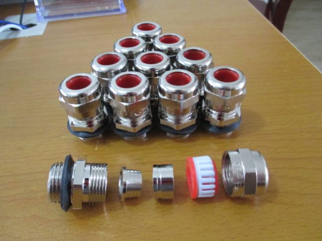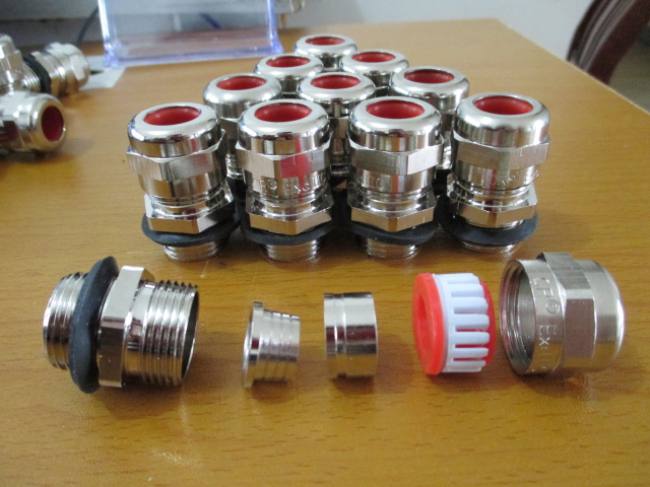产品材质: A.C.F部位采用优质不锈钢制成,B.E部位采用丁腈橡胶 制成,D部位采用白色尼龙制成 螺纹规格: 公制(Mefric)德制(PG),美制(NPT) 工作温度: 静态:-40℃~+110℃短时可达+120℃,动态:-20℃~+80℃,短时可达+100℃; 颜 色: A.C.F部位为黄色,B.E部分为黑色,D部分为白色 防护等级: M-EX系列金属防爆接头适合爆炸气体下的1区和2区及粉尘环境下的21区和22区符合GB3836.1-2000和GB3836.2-2000标准。防爆标志:Eexd。 在规定的卡口范围内,并使用O形密封圈旋紧迫紧头,防水达IP68 产品特性: 特殊夹紧爪与密封件相扣之设计,配合迫紧头装配省时便利,夹紧电缆范围大,抗拉力特强,可防水,防尘,防盐,耐酸碱,酒精,油,脂及一般溶剂。专业从事于配线零件的开发与生产,为全球客户提供数千种规格以上的高品质配线零件:电缆固定头 电缆防水固定头,金属防水接头 金属葛兰头 金属锁头 金属填料函 尼龙软管 金属软管 各种软管接头 绝缘配线槽,线槽剪,尼龙扎线带,扎带枪,压线冒,闭端端子压著工具,扣式护线环,编织套管,尼龙铆钉,预绝缘端子,尼龙浪管,金属蛇管,膨胀管,尼龙螺丝,接线端子台,电源线扣以及各种PC板部件。我们的配线超市,通过UL,CSA,VDE以及欧洲环保认证。